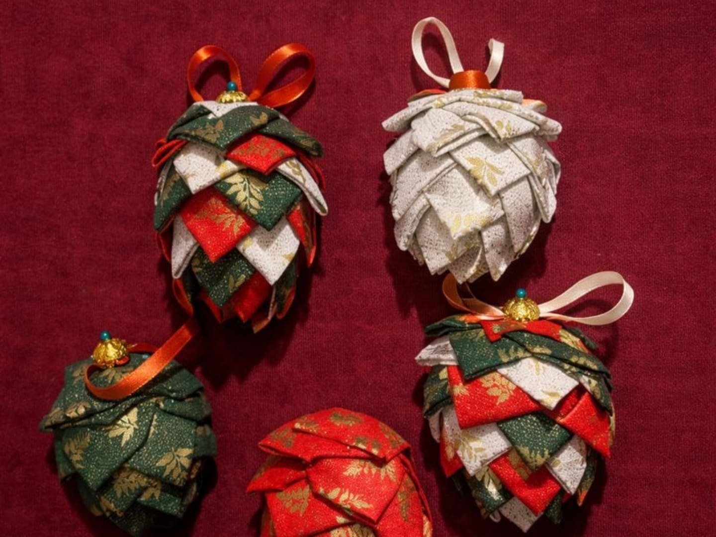 Leave with one or more beautifully finished fabric pine cones — elegant seasonal decorations designed to be enjoyed, gifted, and brought out year after year.