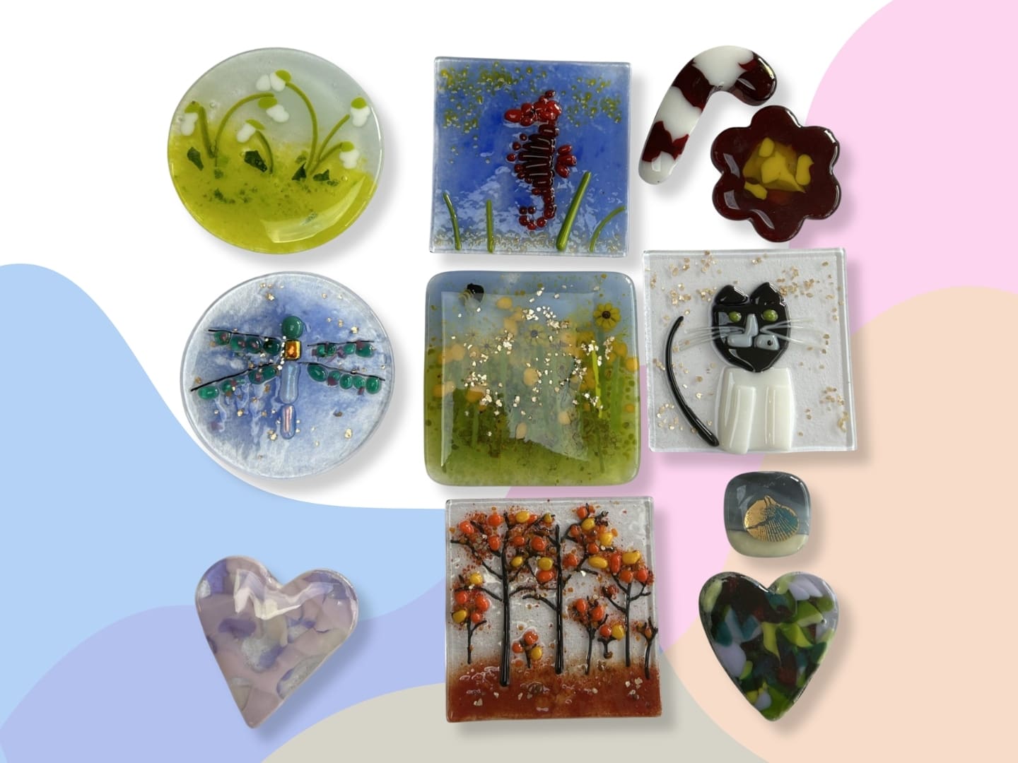 Leave with a unique fused glass mini feature — a small but striking piece full of colour, character, and creative expression.